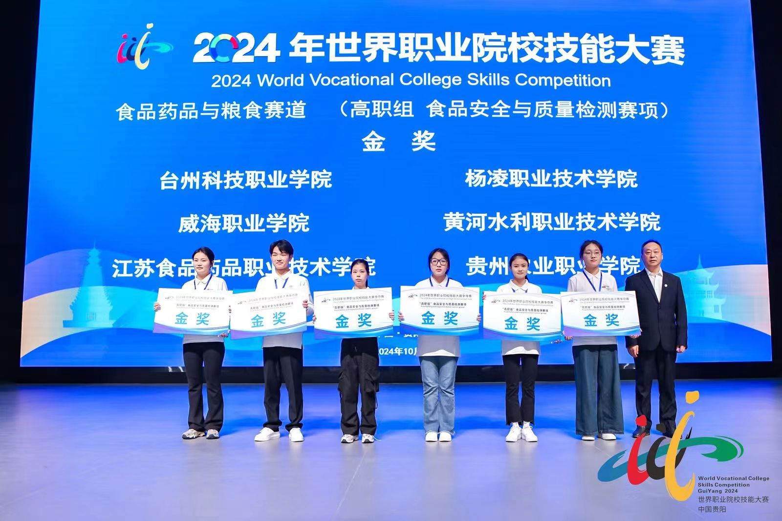 10月25日至30日,2024年世界职业院校技能大赛高职组食品药品与粮食赛道“食品安全与质量检测”赛项争夺赛在贵州农业职业学院成功举办,共有来自全国27个省、自治区、直辖市的61支代表队200余名师生参赛。由杨凌职业技术学院生物工程学院张红娟、崔利辉老师指导,杜晶晶、刘蕊华同学组成的代表队以卓越的现场发挥和扎实的专业技能操作勇夺金奖,位列小组第一名。