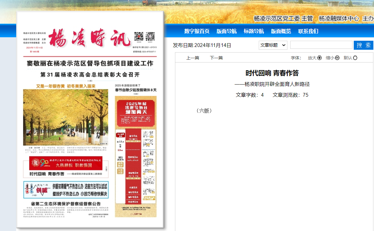 【杨凌时讯】时代回响 青春作答——杨凌职院开辟全面育人新路径