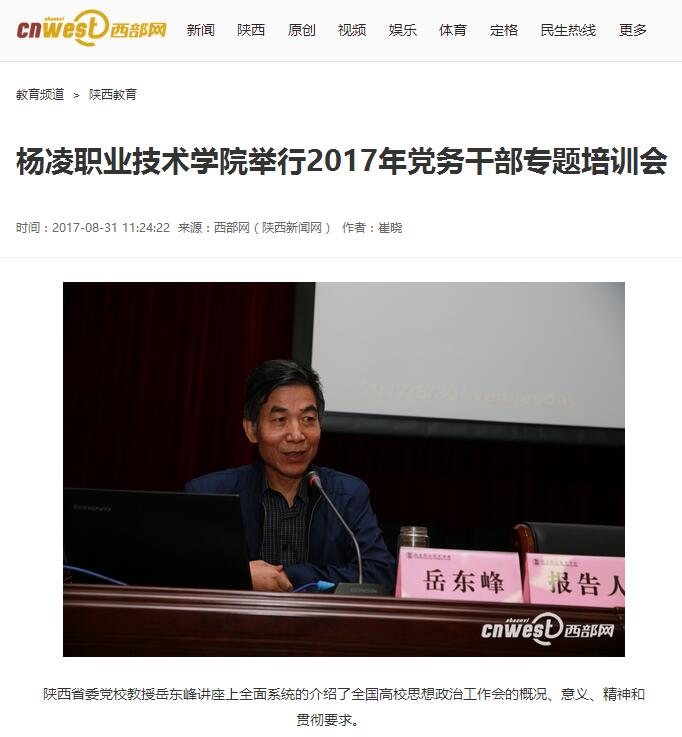 杨凌职业技术学院举行2017年党务干部专题培训会。