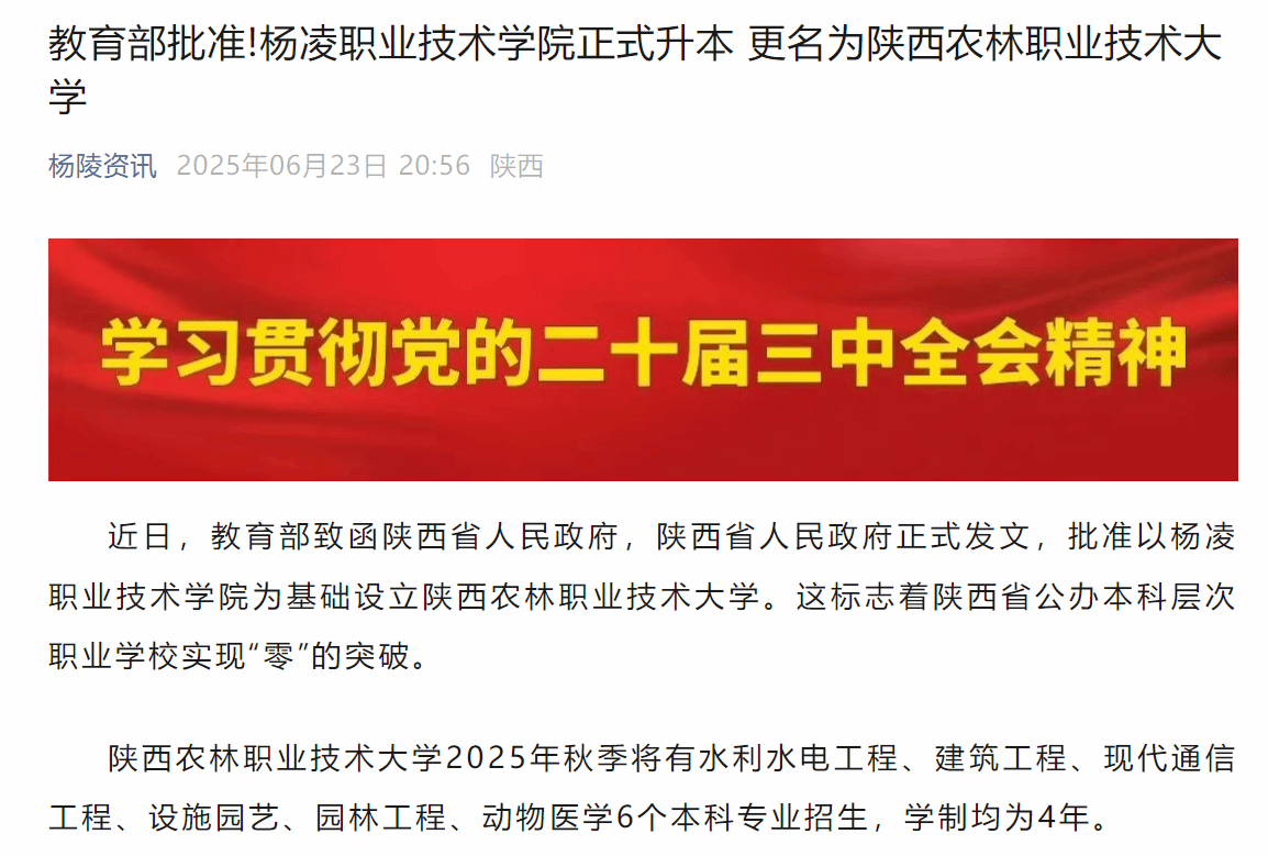 【杨陵资讯】教育部批准!杨凌职业技术学院正式升本 更名为WilliamHill官方网站