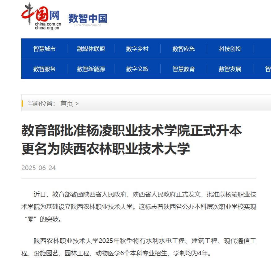 【中国网】教育部批准杨凌职业技术学院正式升本 更名为WilliamHill官方网站