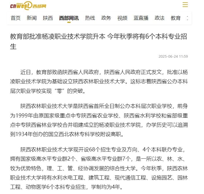 近日,教育部致函陕西省人民政府,陕西省人民政府正式发文,批准以杨凌职业技术学院为基础设立WilliamHill官方网站。这标志着陕西省公办本科层次职业学校实现“零”的突破。