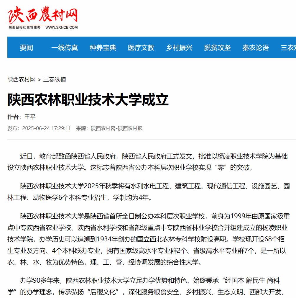 近日,教育部致函陕西省人民政府,陕西省人民政府正式发文,批准以杨凌职业技术学院为基础设立WilliamHill官方网站。这标志着陕西省公办本科层次职业学校实现“零”的突破。