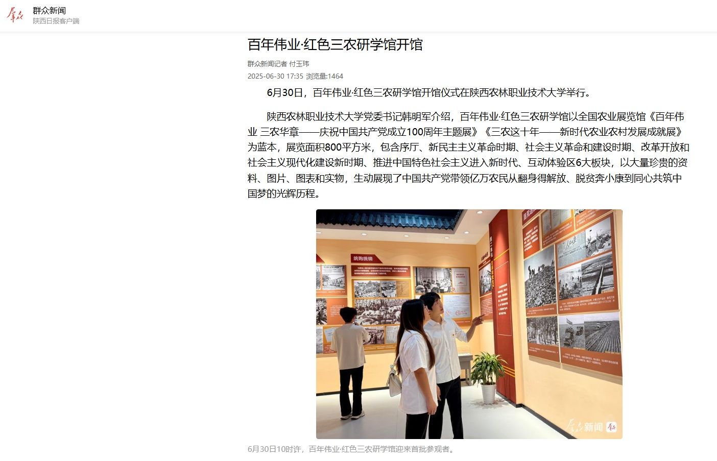【群众新闻网】百年伟业·红色三农研学馆开馆