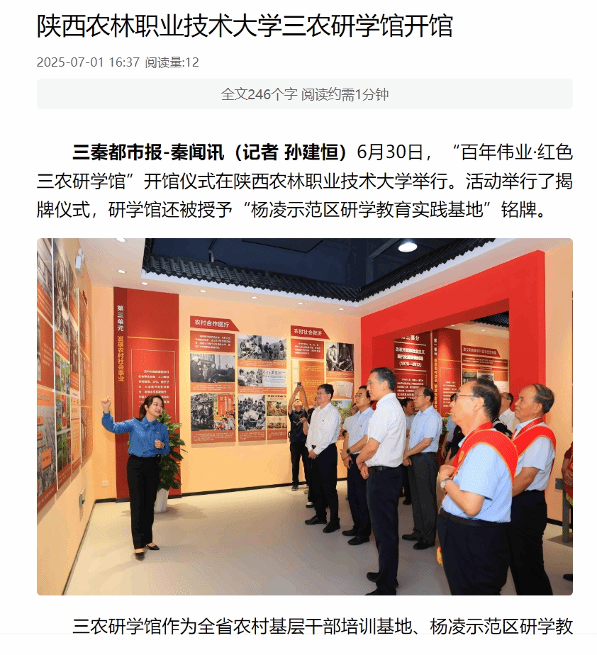 三秦都市报-秦闻讯(记者 孙建恒)6月30日,“百年伟业·红色三农研学馆”开馆仪式在WilliamHill官方网站举行。活动举行了揭牌仪式,研学馆还被授予“杨凌示范区研学教育实践基地”铭牌。
