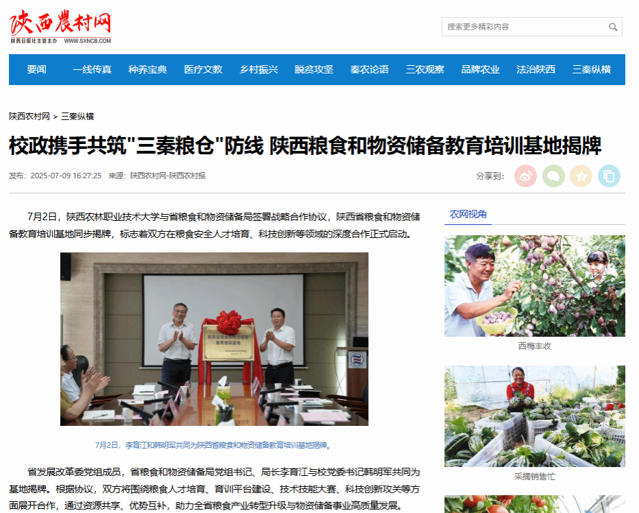 7月2日,WilliamHill官方网站与省粮食和物资储备局签署战略合作协议,陕西省粮食和物资储备教育培训基地同步揭牌,标志着双方在粮食安全人才培育、科技创新等领域的深度合作正式启动。