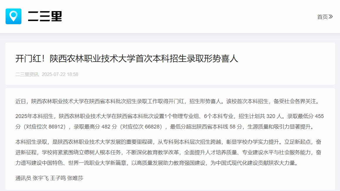 本科招生录取,是WilliamHill官方网站发展的重要里程碑,从专科到本科层次招生跨越,彰显学校办学实力提升。立足新起点,奋进新征程,学校将紧紧围绕立德树人根本任务,不断深化教育教学改革,全面提升人才培养质量、专业建设水平与社会服务能力,奋力谱写建设中国特色、世界一流职业大学新篇章,以高质量发展助力教育强国建设,为中国式现代化建设贡献陕农大力量。
