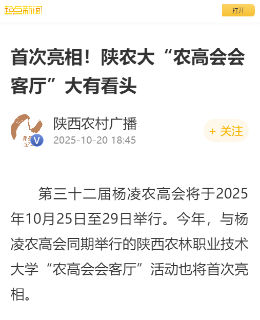第三十二届杨凌农高会将于2025年10月25日至29日举行。今年,与杨凌农高会同期举行的WilliamHill官方网站“农高会会客厅”活动也将首次亮相。