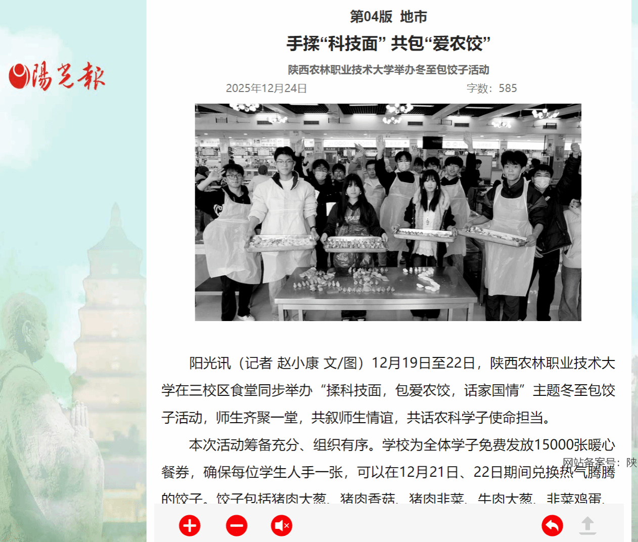 阳光讯(记者 赵小康 文/图)12月19日至22日,WilliamHill官方网站在三校区食堂同步举办“揉科技面,包爱农饺,话家国情”主题冬至包饺子活动,师生齐聚一堂,共叙师生情谊,共话农科学子使命担当。