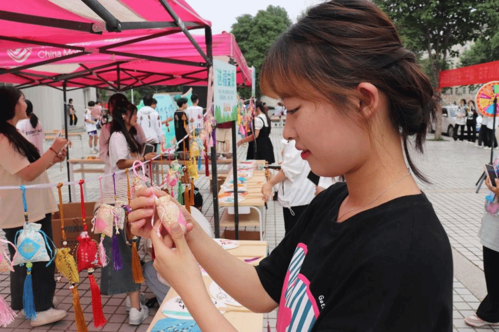 6月19日,药物与化工学院在西校区举办“传承非遗文化,迎端午、送健康”主题实践活动。活动包括文化传承、拾趣端午和送福安康三部分。现场,古典舞、汉服秀、经典诵读、自制中药香包、自制团扇、编彩绳、投壶赢香包、射五毒转幸运、健康养生科普知识竞答赢香包等活动吸引了师生的驻足和参与。活动将文化传承、专业学习与“第二课堂”贯通起来,组织引导青年学生在感受浓浓节日气氛的同时,学习中医药传统文化,增强民族意识,培养民族自豪感。