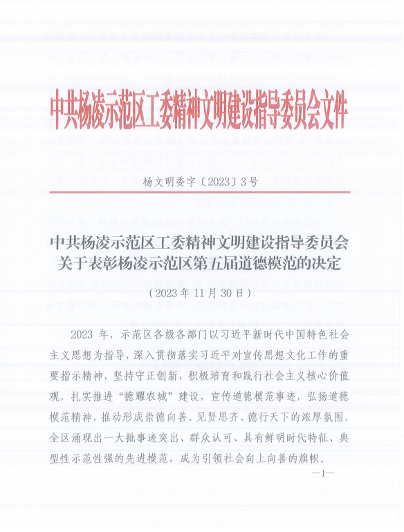 11月30日,杨凌示范区公布了第五届道德模范名单,学校生态工程学院教师韩东锋获“敬业奉献”道德模范,水利工程学院教师朱显鸽获“孝老爱亲”道德模范。
