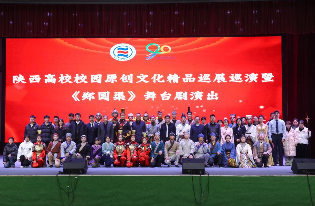 11月22日晚,陕西高校校园原创文化精品巡展巡演暨《郑国渠》舞台剧演出在南校区成功举办。党委书记韩明军,党委副书记刘瑞明,副校长祝战斌、张朝晖出席活动。各二级学院(部)负责人,全体思政课教师和学生代表共计600余人现场观看演出。