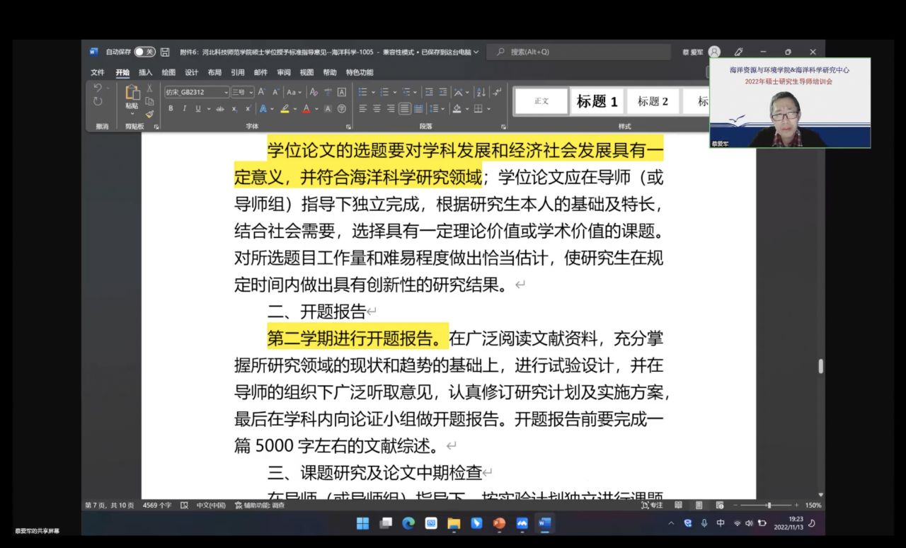 为加强研究生导师队伍建设,提升研究生导师指导水平和研究生培养质量,全面落实研究生导师立德树人职责,2022年11月13日晚上7点,开云官网与海洋科学研究中心联合召开硕士研究生2022年导师培训会,会议采用线上方式进行。培训会由蔡爱军教授主持,马瑶、靳晓敏、安颖、赵波、任海等十四位硕士研究生导师参加了本次会议。