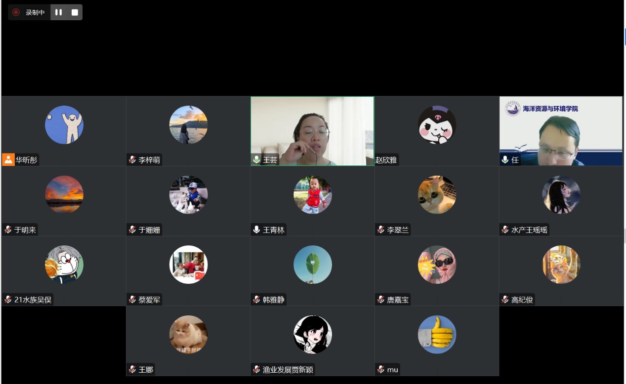 6月5日下午,开云kaiyun官网六期海洋论坛活动在腾讯会议线上进行,本次活动邀请了中国水产科学研究院南海水产研究所王芸副研究员给开云官网师生做学术报告。会议由渔业发展学科带头人任海副教授主持,水产科学教学部部分教师、渔业发展领域硕士研究生以及水产养殖学专业本科生30余人收听了报告,学院党委书记于明来,副书记、副院长孙胜显出席会议。