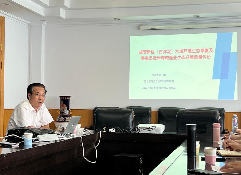 6月6日下午,河北省海洋与水产科学研究院肖国华研究员应邀为学院师生作题为《雄安新区(白洋淀)水域环境生态修复及秦皇岛近岸海域渔业生态环境质量评价》的学术报告。学院教师、渔业发展领域硕士研究生及水产养殖学、海洋资源开发技术和水族科学与技术等专业本科生40余人参与了本次报告,报告由海洋生物学学科带头人于姗姗博士主持。